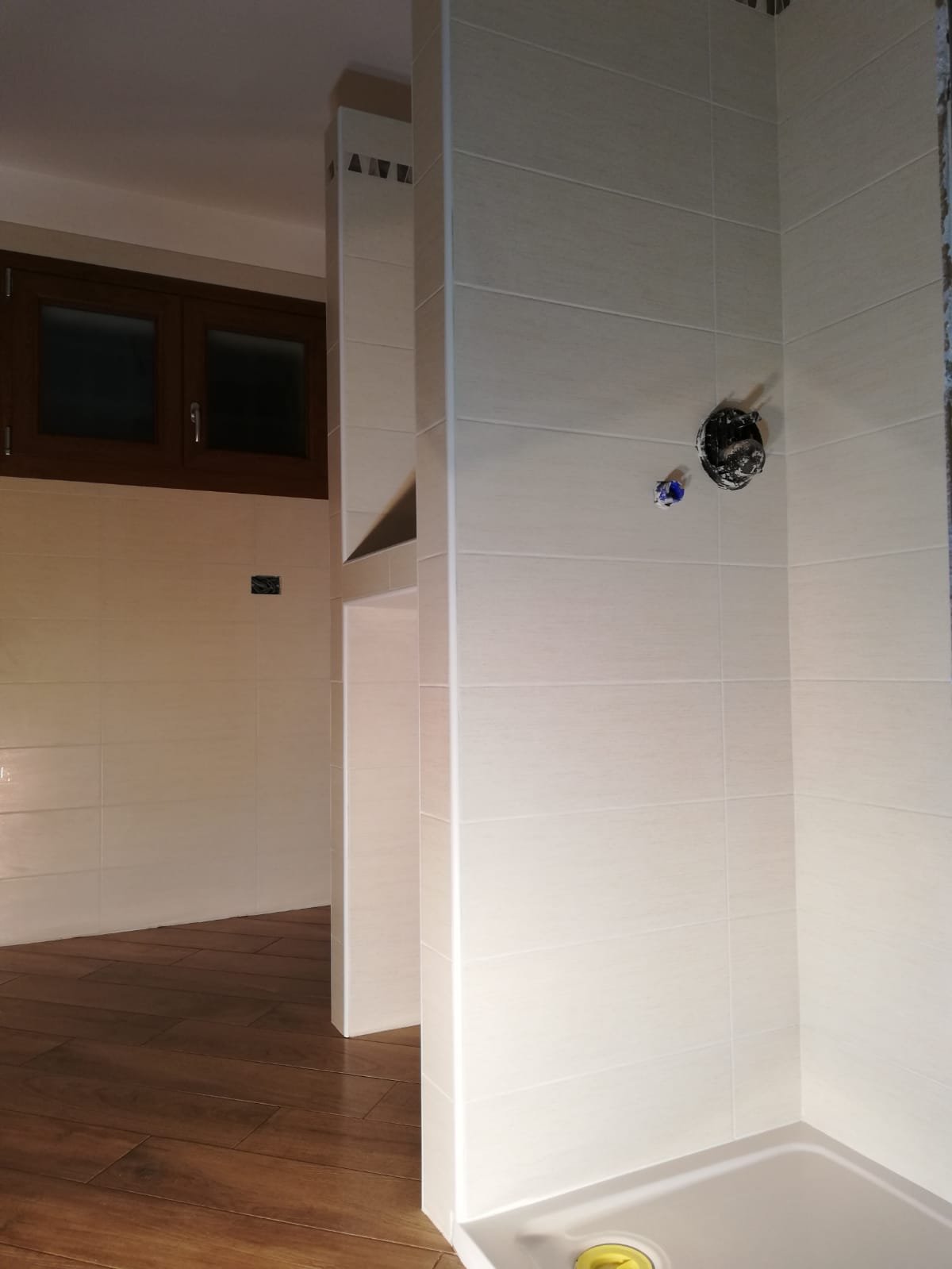 Rifacimento completo dell' appartamento partendo dalla nostra consulenza tecnica compresa di fornitura e posa di pavimento finto legno per tutta l'abitazione e tutti i vari rivestimenti: cucina, due bagni e lavanderia.