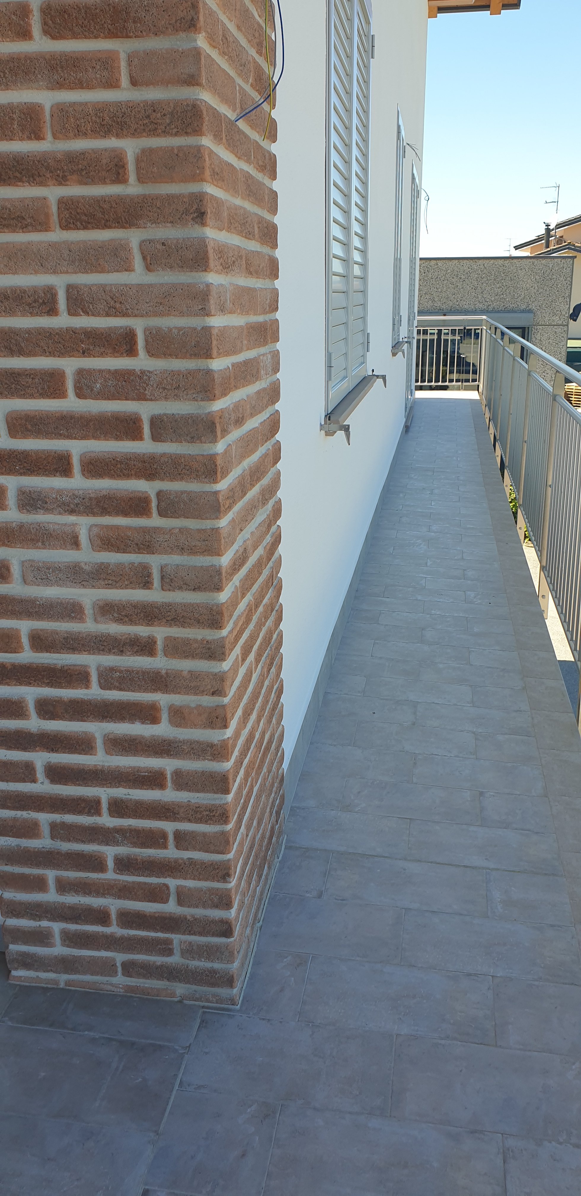 REALIZZAZIONE CON FORNITURA E POSA DEL PAVIMENTO INTERNO EFFETTO LEGNO SERIE ALPI BIANCO 30X120 SAIME CERAMICHE, E PAVIMENTO TERRAZZA FORMATO 20X40 EFFETTO COTTO ANTICO BEIGE SAIME CERAMICHE.